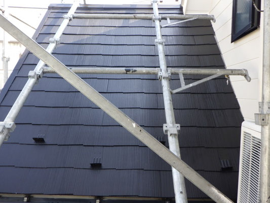 コロニアル屋根への日射反射(遮熱性)塗装(日本ペイント サーモアイSi)と、