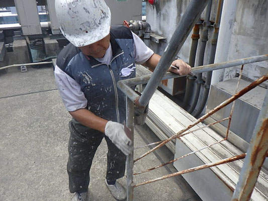 ①古ペンキと錆落とし ②清掃 ③全錆止め(関西ペイント ザウルスEXⅡ)